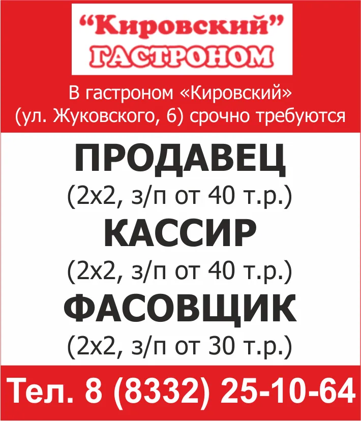 КОГКУ ЦЗН г. Кирова Первомайский отдел: ул. Пролетарская, 67, кабинет 8; Нововятский отдел: ул. Мопра, 4Б